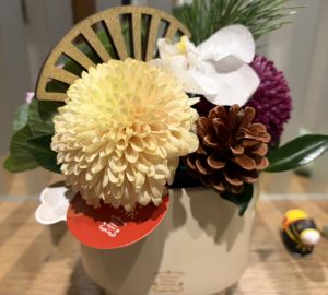 華やかな花々や可愛らしい獅子の置物が、新年の訪れを優しく迎えてくれています。